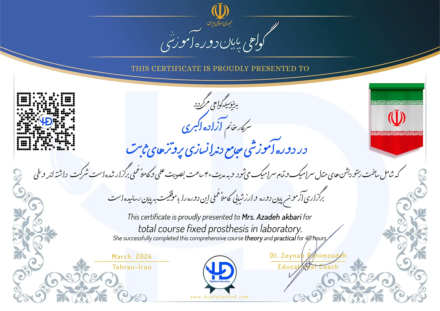 در دوره جامع پروتزهای ثابت به‌صورت VIP در این مرکز شرکت داشته‌اند و مباحث آموزشی آن را به‌طور عَملی و کاملاً عِلمی با موفقیت به پایان رساندند.