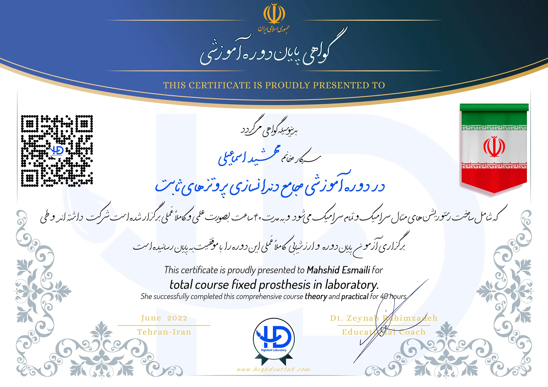 در دوره جامع پروتزهای ثابت به‌صورت VIP در این مرکز شرکت داشته‌اند و مباحث آموزشی آن را به‌طور عَملی و کاملاً عِلمی با موفقیت به پایان رساندند.