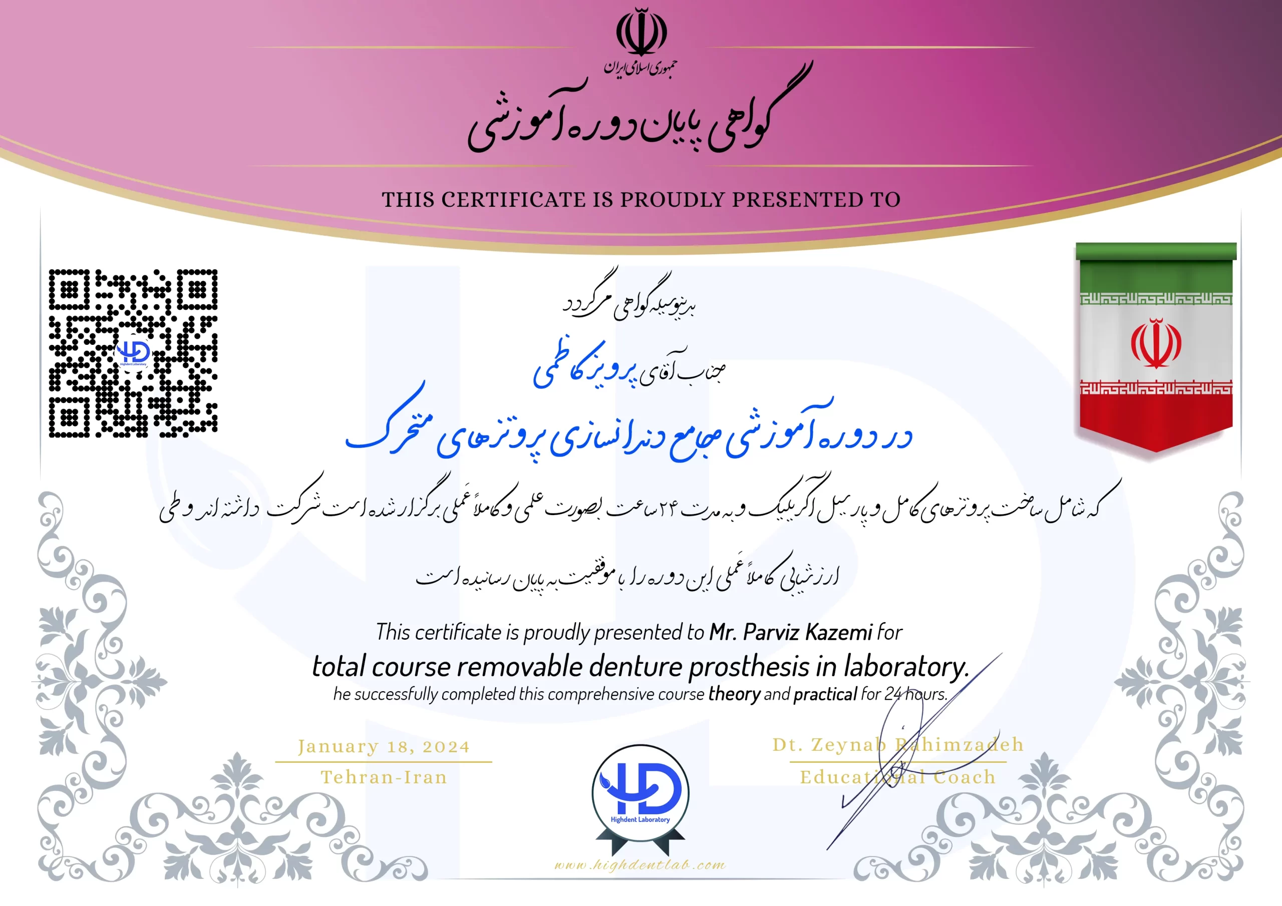 در دوره جامع پروتزهای متحرک به‌صورت VIP در این مرکز شرکت داشته‌اند و مباحث آموزشی آن را به‌طور عَملی و کاملاً عِلمی با موفقیت به پایان رساندند.