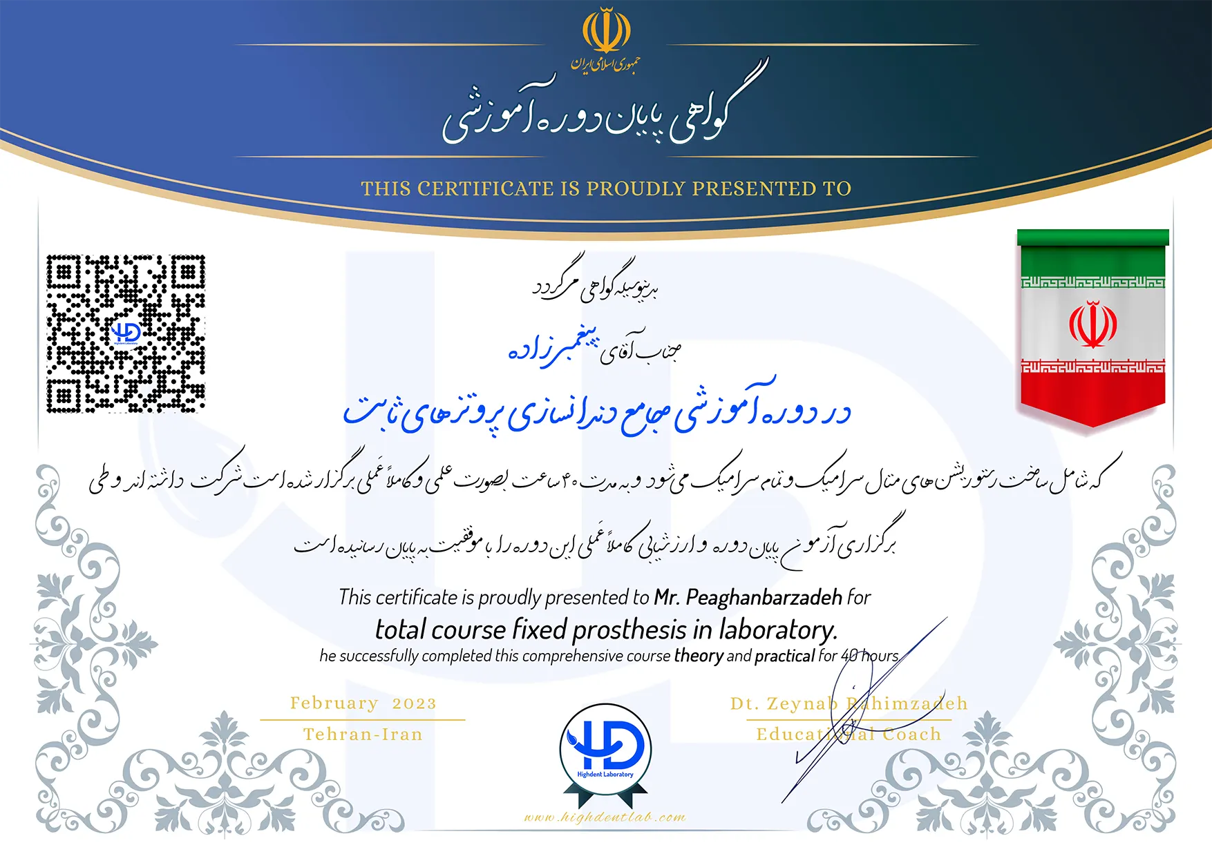 در دوره جامع پروتزهای ثابت به‌صورت VIP در این مرکز شرکت داشته‌اند و مباحث آموزشی آن را به‌طور عَملی و کاملاً عِلمی با موفقیت به پایان رساندند.