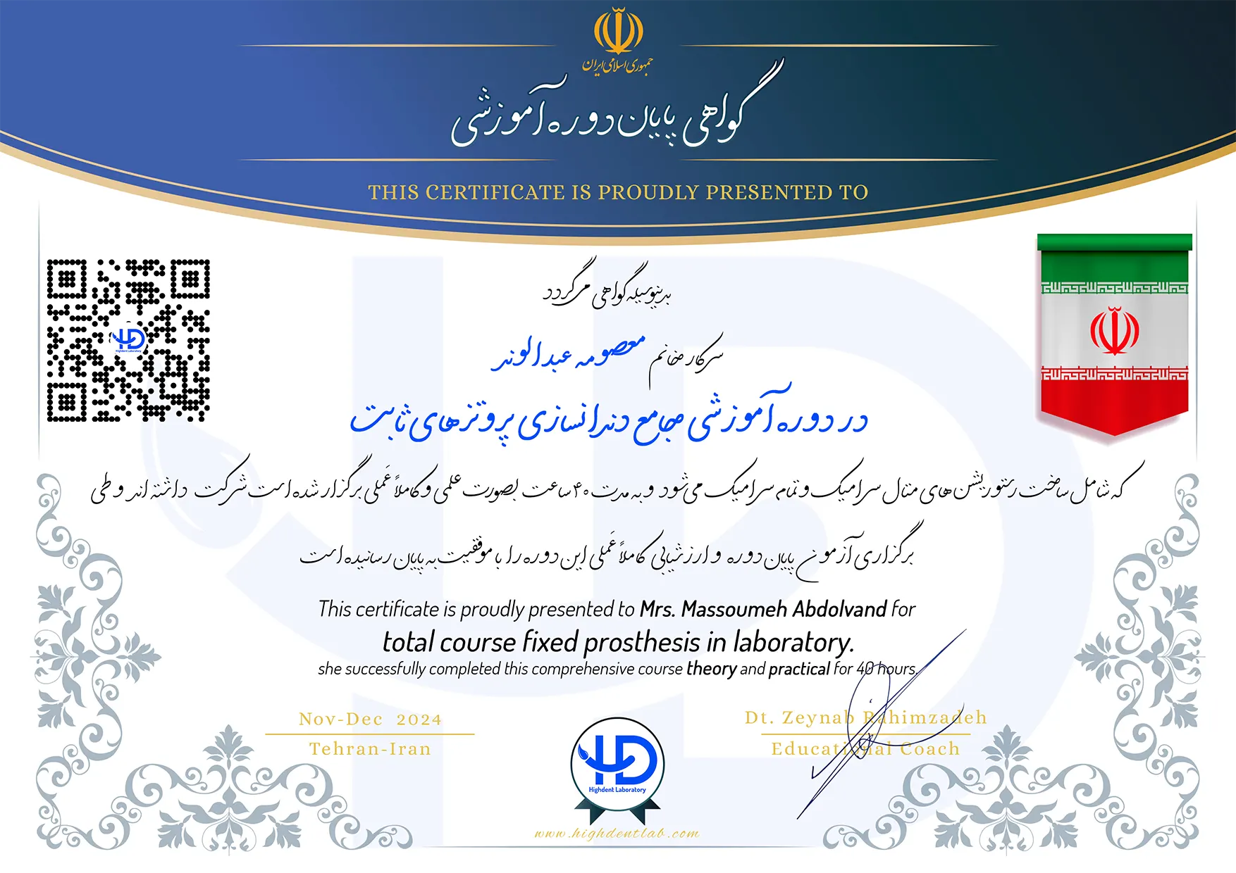 در دوره جامع پروتزهای ثابت به‌صورت VIP در این مرکز شرکت داشته‌اند و مباحث آموزشی آن را به‌طور عَملی و کاملاً عِلمی با موفقیت به پایان رساندند.