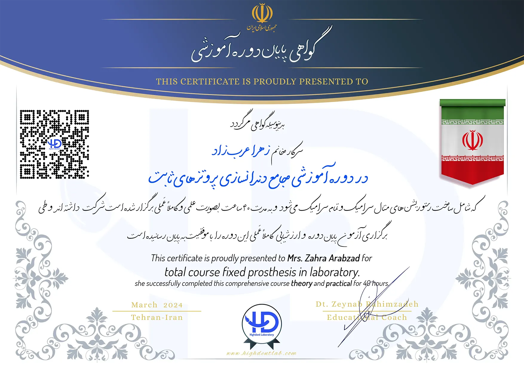 در دوره جامع پروتزهای ثابت به‌صورت VIP در این مرکز شرکت داشته‌اند و مباحث آموزشی آن را به‌طور عَملی و کاملاً عِلمی با موفقیت به پایان رساندند.